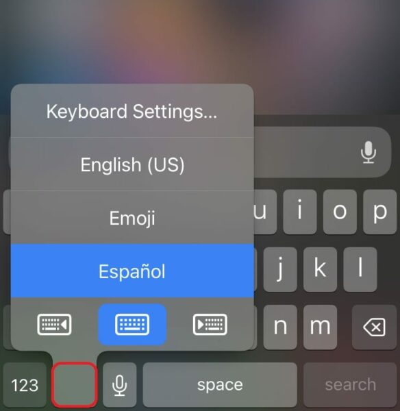 - A nyelvek közötti váltáshoz érintse meg hosszan a földgömb vagy hangulatjel ikont a billentyűzeten. Ez az ikon a billentyűzet bal alsó vagy jobb alsó sarkában található, az eszköz beállításaitól függően.