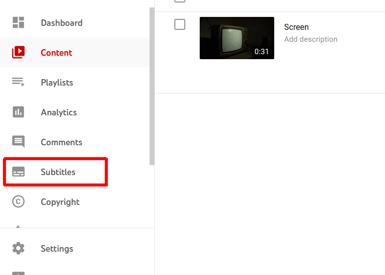 - A YouTube Stúdióban kattintson aFeliratOpció az oldalsávban.