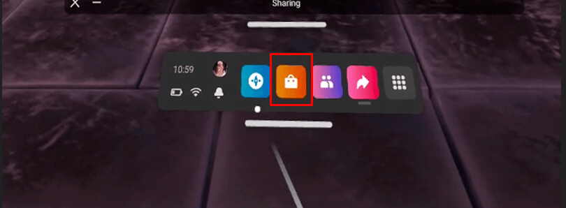 - Hozza fel aEszköztárAz Oculus gomb megnyomásával a jobb oldali érintővezérlőn. Válassza ki a bevásárló táska ikon által képviselt üzletet.