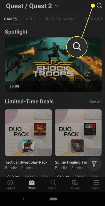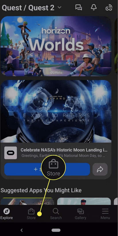 Kövesse ezeket a lépéseket, az Androidon vagy az iOS -on, hogy játékokat vásároljon az Oculus Quest vagy a Quest 2 számára a mobilalkalmazáson keresztül: