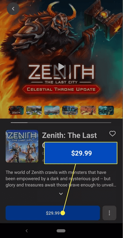- Miután kiválasztotta a játékot, érintse meg az ár gombot.