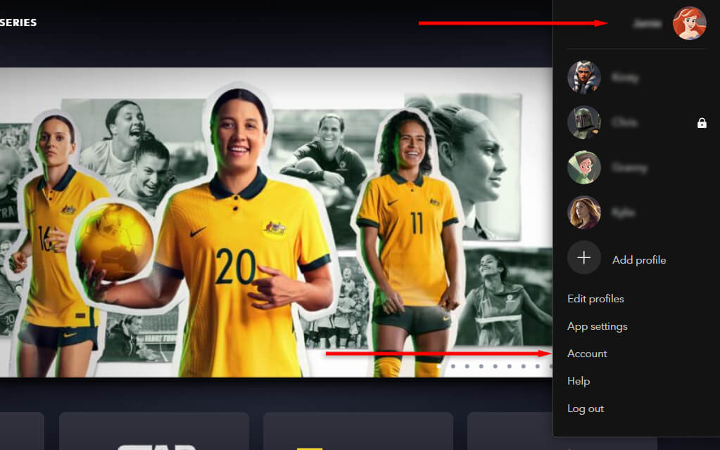 - Válassza ki aprofil ikona Disney Plus jobb felső sarkában.