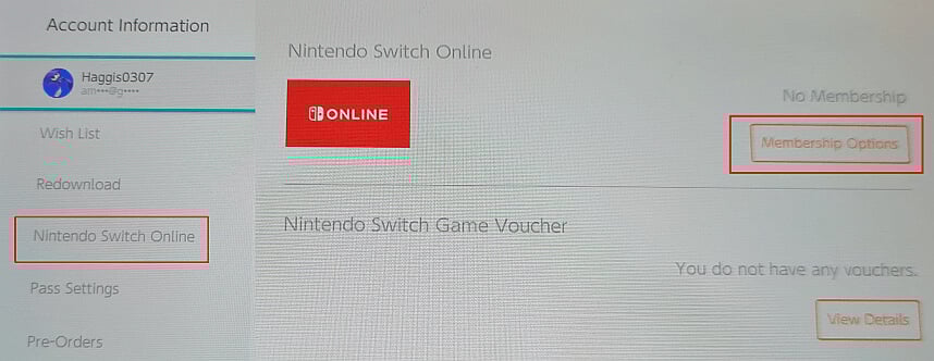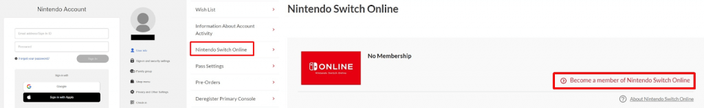 - A képernyő bal oldalán található menüből válassza a lehetőségetNintendo Switch Online.