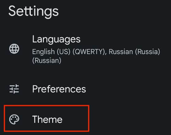 - A Google billentyűzet beállításaiban válassza kiTémaA testreszabási lehetőségek megnyitásához.