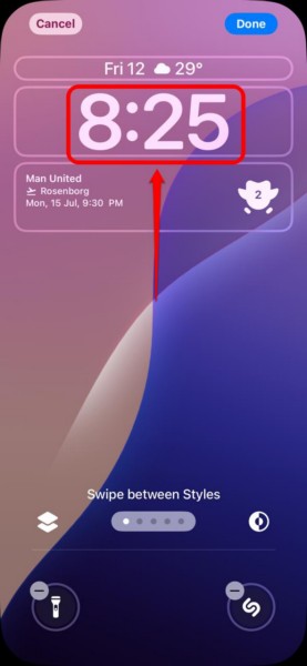 5. Érintse meg az órát a zár képernyőnAz iPhone -on való testreszabáshoz.