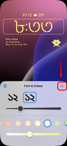 9.Miután elégedett volt a lezárási képernyő óra testreszabásával, érintse meg aX gombA betűtípuson és a színes felhasználói felületen, hogy bezárja.