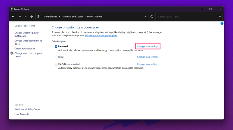 4.A teljesítményterv, amelyet a*aaktuális teljesítménytervhogy a Windows 11 laptopján használja.