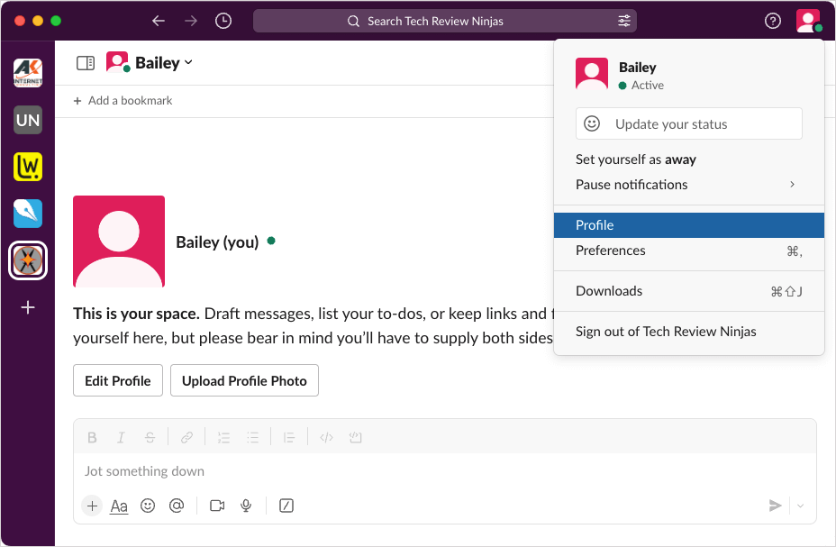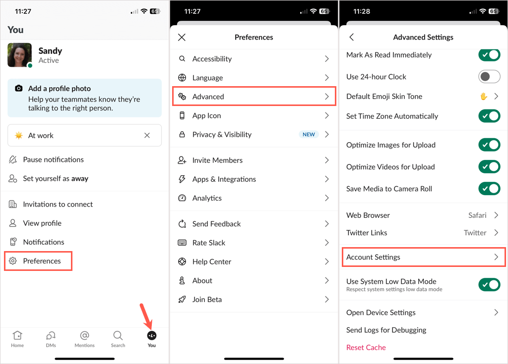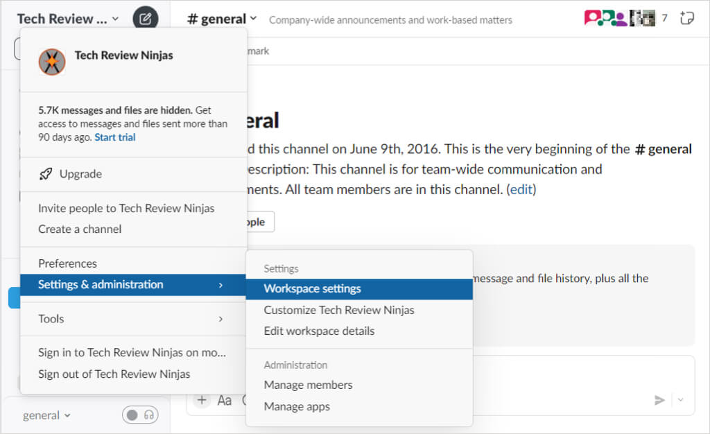 - Kövesse a fenti lépéseket a Slack -fiók beállításainak eléréséhez.