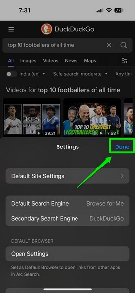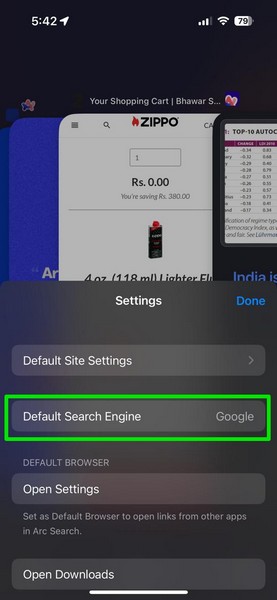 Most, ahogy fentebb említettük, meglehetősen könnyű megváltoztatni az alapértelmezett keresőt az iPhone Arc Search böngészőjében, és csak néhány érintésre van szükség. Amikor telepíti az Arc Search böngészőt, az a Google-t használja alapértelmezett keresőként.