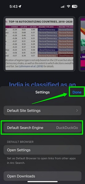 Ennek ellenére nézze meg az alábbi lépéseket, hogy módosítsa az alapértelmezett keresőmotort az Arc Search alkalmazásban iPhone-ján: