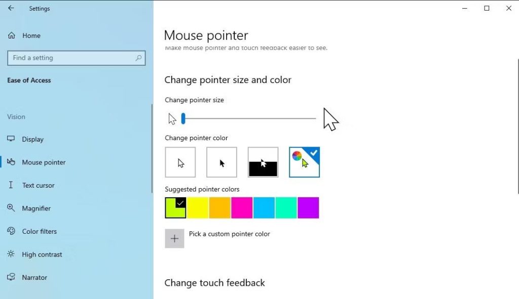 A kurzor színének megváltoztatása mellett kísérletezhet a kurzormérettel is. Ez különösen hasznos lehet, ha látásproblémái vannak. A Beállítások menüben módosíthatja a kurzor méretét.