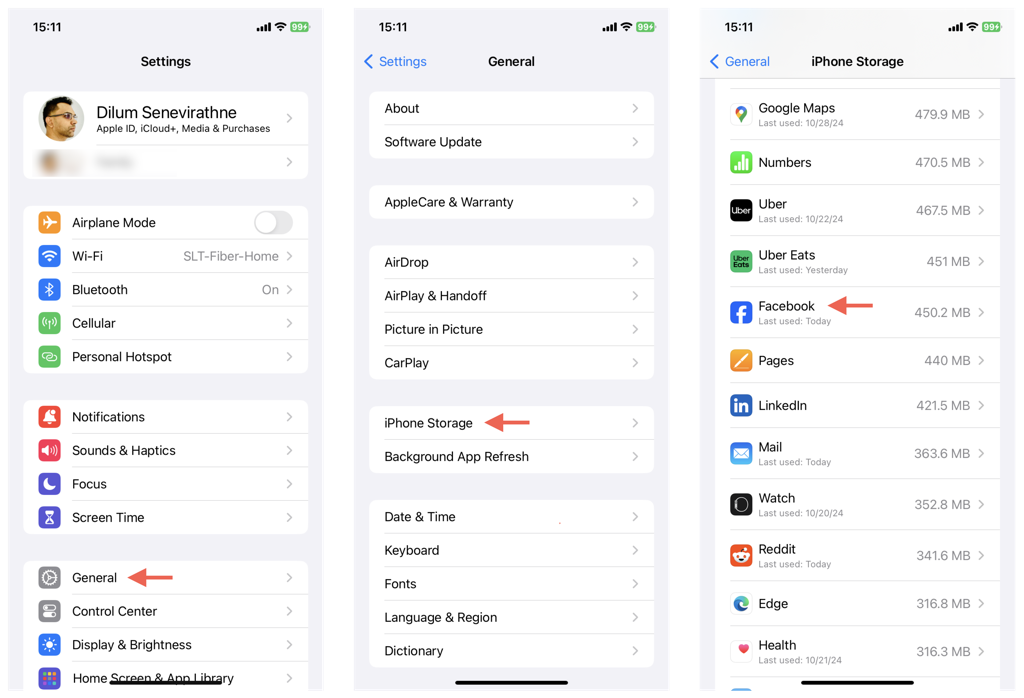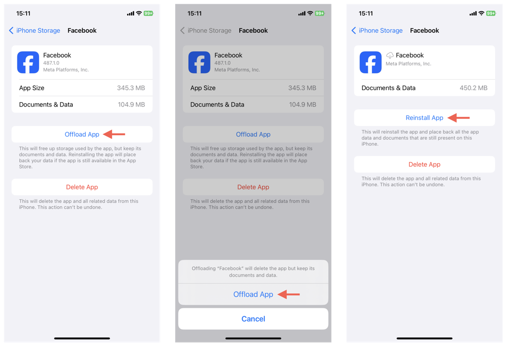A Facebook alkalmazás nem kínál beépített lehetőséget a gyorsítótár törlésére, és az iOS szintén nem ad módot a Facebook gyorsítótárazott adatainak törlésére. A megoldás az alkalmazás kirakodása és újratelepítése, amely hajlamos eltávolítani az alkalmazás ideiglenes fájljainak nagy részét.