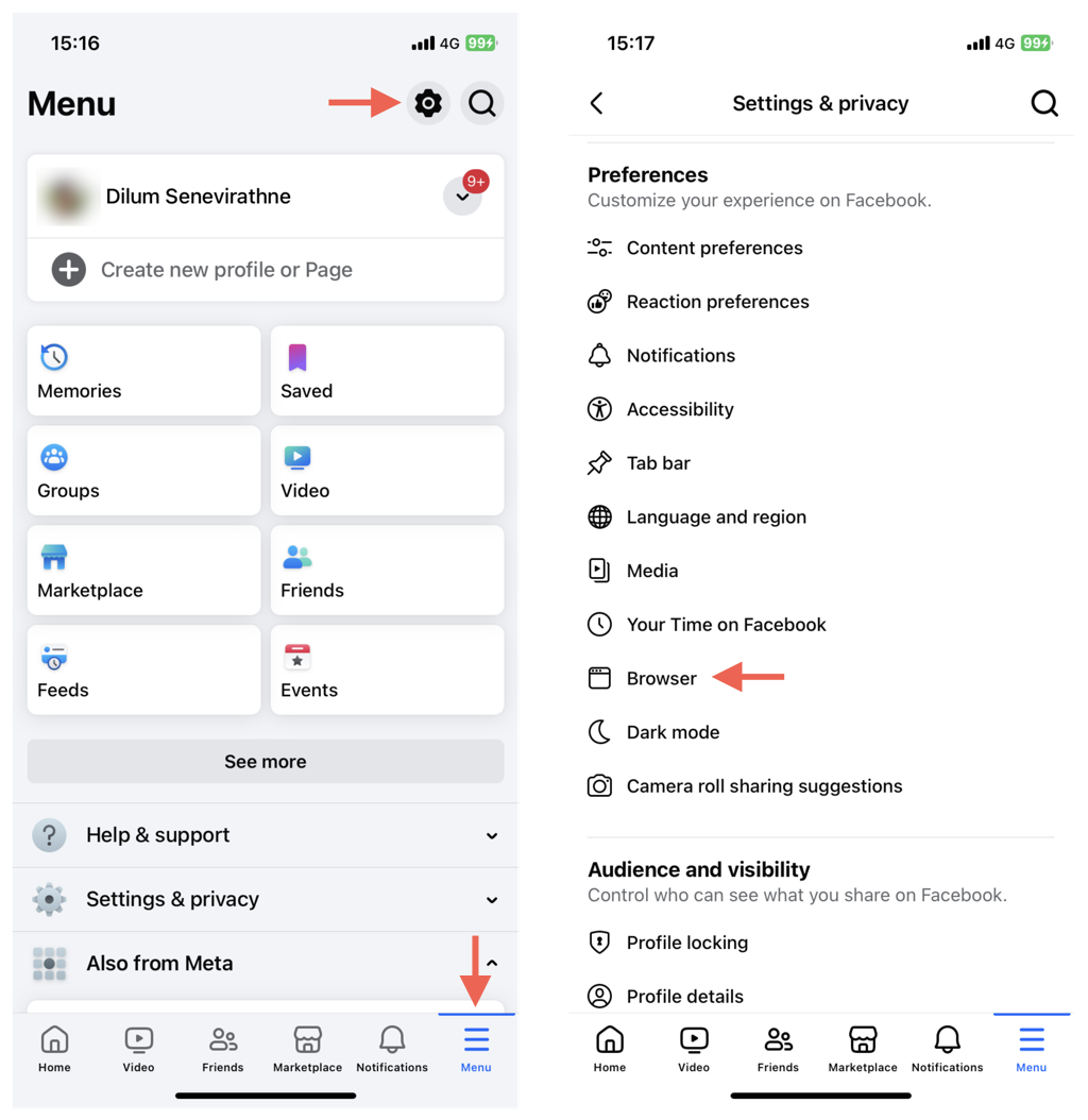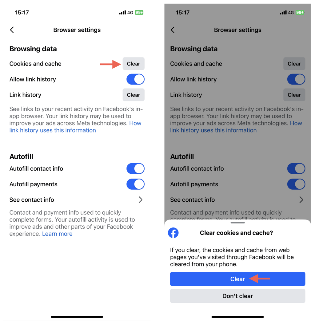 A Facebook alkalmazásnak beépített böngészője van, amely lehetővé teszi a linkek megnyitását és kölcsönhatását. Szerencsére az alkalmazás lehetőséget kínál a gyorsítótár törlésére, ha problémái vannak a linkek betöltése.