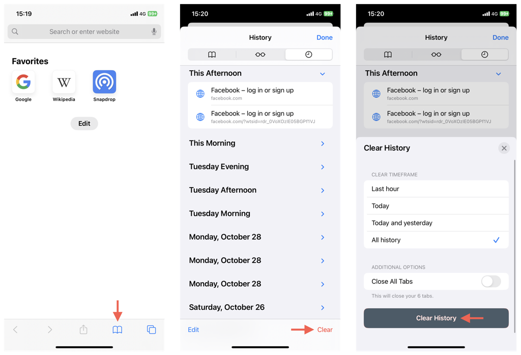 - Nyissa meg a Safari alkalmazást, és koppintson aKönyvjelzőkikon.