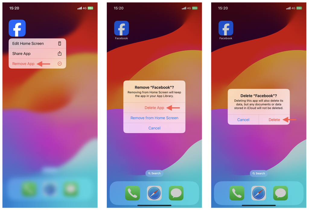Hogyan lehet törölni a Facebook gyorsítótárat az iPhone -on az alkalmazás eltávolításával