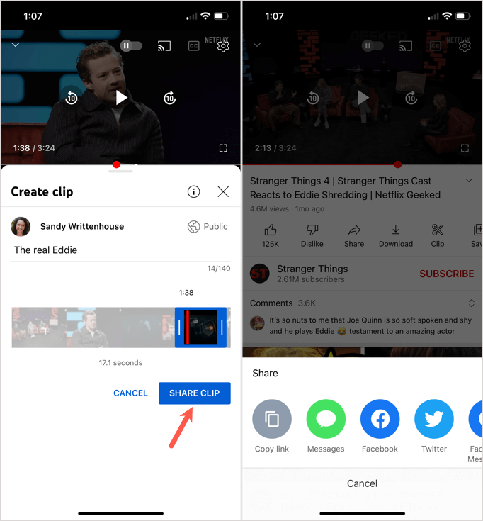- Amikor befejezi a klipet, válassza kiMegosztási klip-