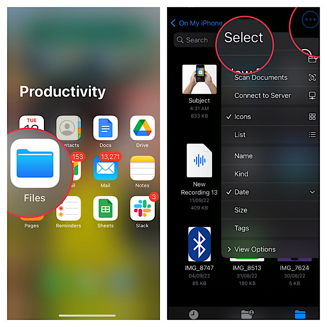 1.Az induláshoz indítsa el aApple fájlokalkalmazást iPhone-ján vagy iPadjén.