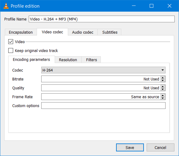Megadhatjuk az audio- és videokodeket, és minden fontos beállítást, mint a felbontás, bitsebesség, képkocka sebesség vagy hangminőség.