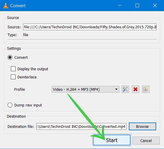 Ha minden beállítást úgy rögzítünk, ahogyan szeretnénk, az átalakítást a Startból (Start) indíthatjuk. A VLC elmenti a videót a kiválasztott formátumban és az általunk kezdetben kiválasztott mappába. A folyamat időtartama teljes mértékben függ a videó hosszától, a választott beállításoktól és a számítógépünk teljesítményétől.