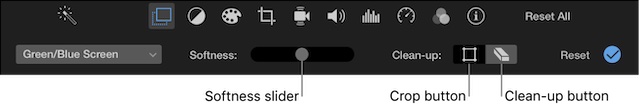 - A zöld/kék képernyős klip területeinek elkülönítése:Kattintson a Vágás ikonra, majd húzza el a keret sarkait.