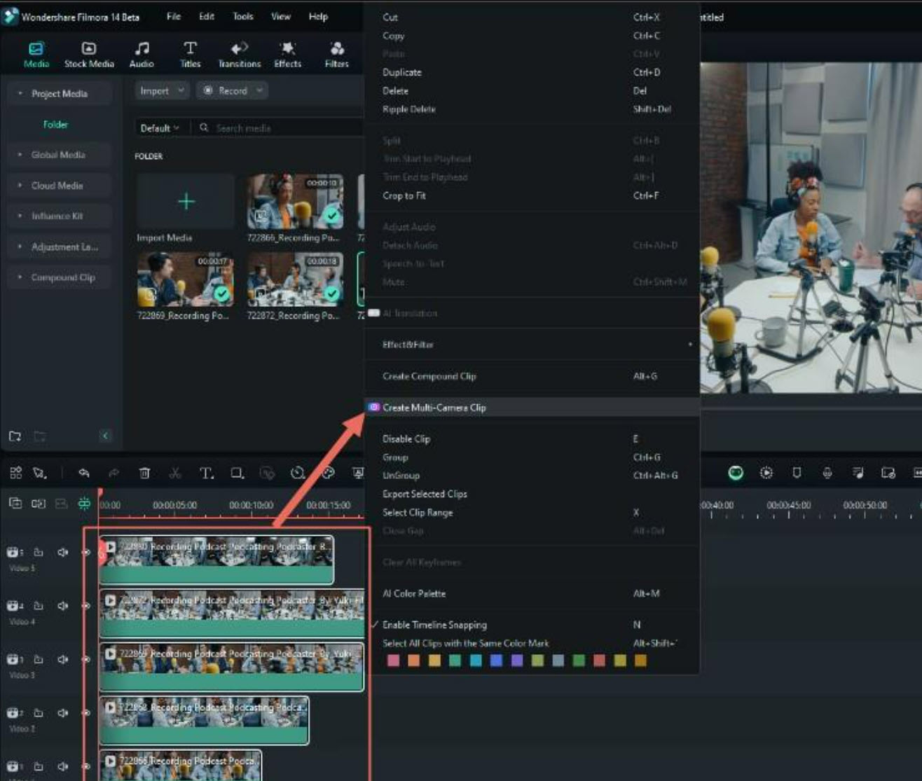 Útmutató a multicam szerkesztési munkafolyamathoz a Filmorában