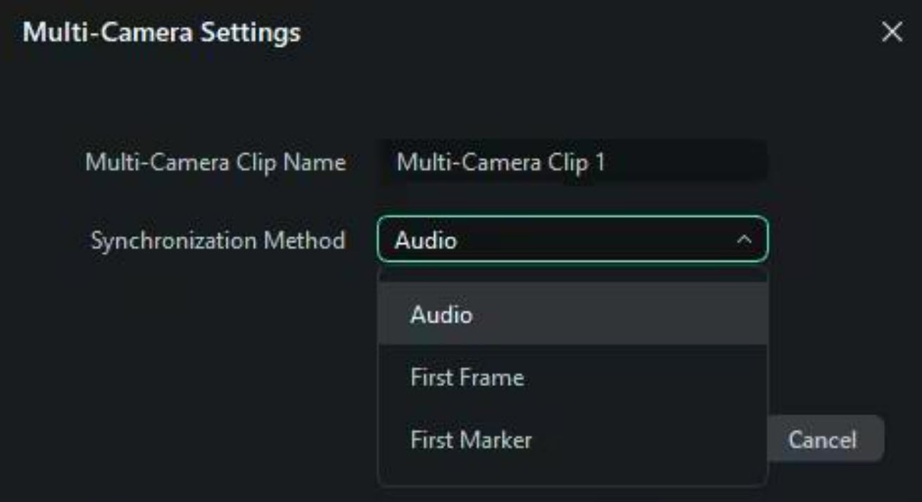 - Automatikus szinkronizálás:A Filmora audio, az első keret vagy az első marker alapján szinkronizálhatja a több kamera klipet. Ez megkönnyíti a különféle kamerák videoklipjeinek összehangolását gond nélkül.