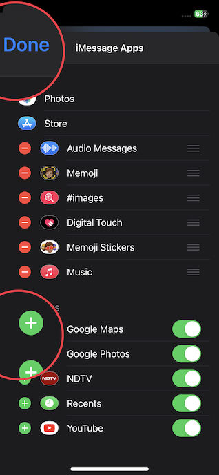 Ha új alkalmazásokat szeretne hozzáadni az iMessage alkalmazásfiókhoz, akkor érintse meg a BE gombotA „+” gombEgy adott alkalmazás bal oldalán, amelyet a további alkalmazások szakaszban felsorolnak. Mivel nincs korlátozás, annyi alkalmazást adhat hozzá az alkalmazásfiókhoz, amennyire szüksége van. Annak érdekében, hogy a rendetlenséget az öbölben tartsák, azt javaslom, hogy csak az alapvető alkalmazásokat tartsa.