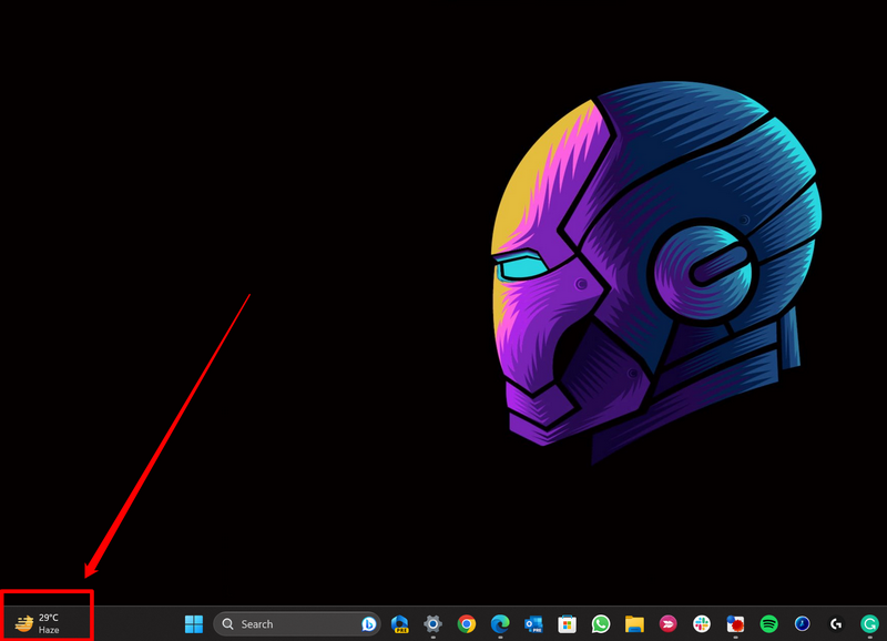 4.A fenti lépések követésével Windows 11 számítógépén vagy laptopján azonnal áthelyezi a tálca ikonjait a képernyő közepéről a bal oldalra. Ha a Tálca ikonjait balra mozgatja, akkor az alapértelmezés szerint bal oldalon maradó Widgetek ikon jelenik meg a többi engedélyezett tálcaelem mellett.