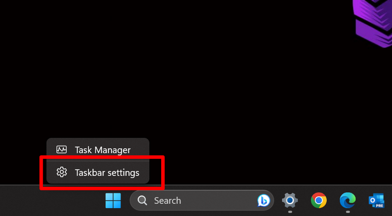 1. Kattintson a jobb gombbal a tálcáraés nyissa meg aTálca beállításaioldalt a Windows 11 rendszerű eszközön.