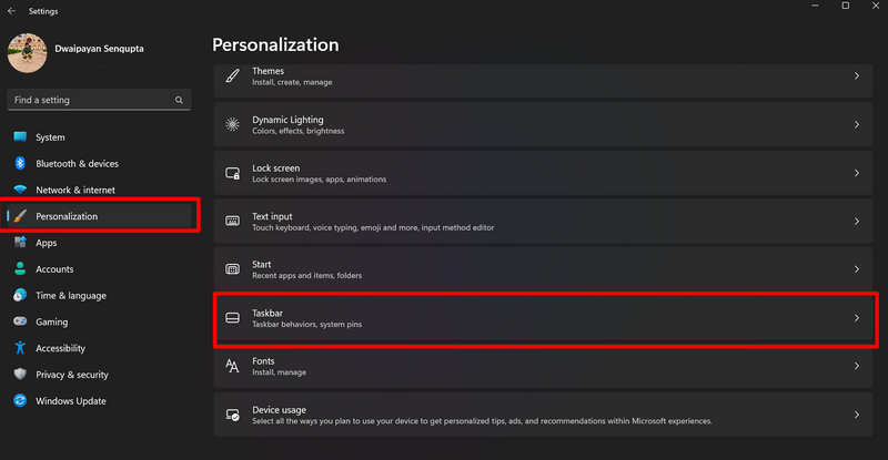 1.Nyissa meg aTálca beállításaioldalt Windows 11 rendszerű számítógépén vagy laptopján.