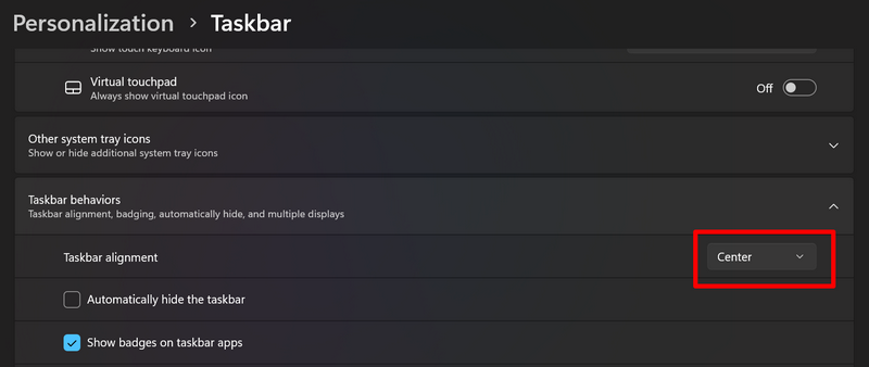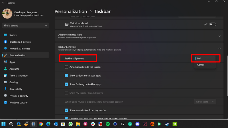 Ha tetszett a tálcaikonok bal oldali tájolása a Windows előző verziójában, és nem igazán tetszik az új középső tájolás a Windows 11 rendszerben, akkor az ikonokat teljesen balra mozgathatja.