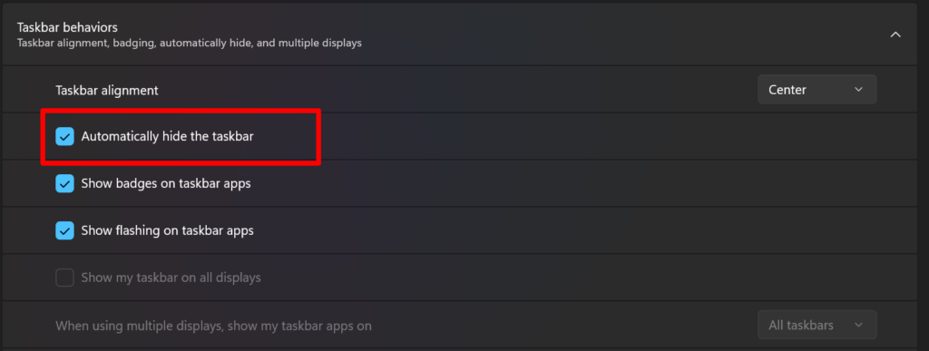 4.Ha a fent említett beállítás engedélyezve van a Windows 11 számítógépén vagy laptopján, a Tálca automatikusan eltűnik az eszközről, ha nem használja.