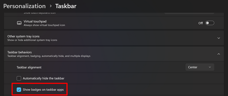 Ha szeretne értesítési jelvényeket látni a Windows 11 rendszerű számítógépe vagy laptopja tálcáján lévő alkalmazásokhoz, engedélyezheti őket a Tálca beállításai oldalon. Kövesse az alábbi lépéseket a Tálcaikonok jelvényeinek megjelenítéséhez vagy elrejtéséhez Windows-eszközein: