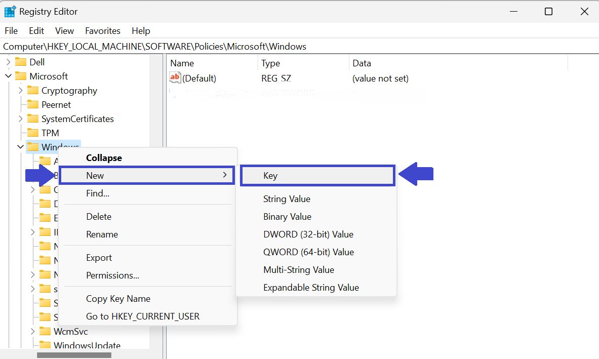 3. Ha nincs WindowsUpdate gombja, létrehozhat egy újat.