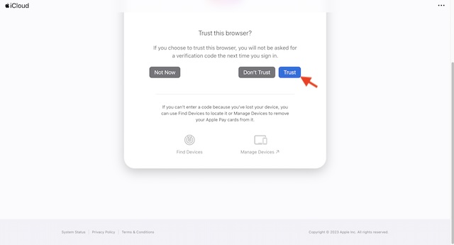 5.A rendszer arra is felkéri, hogy bízzon a böngészőben. Ha nem szeretné újra és újra megadni a hitelesítési kódot, feltétlenül kattintson a Trust lehetőségre.