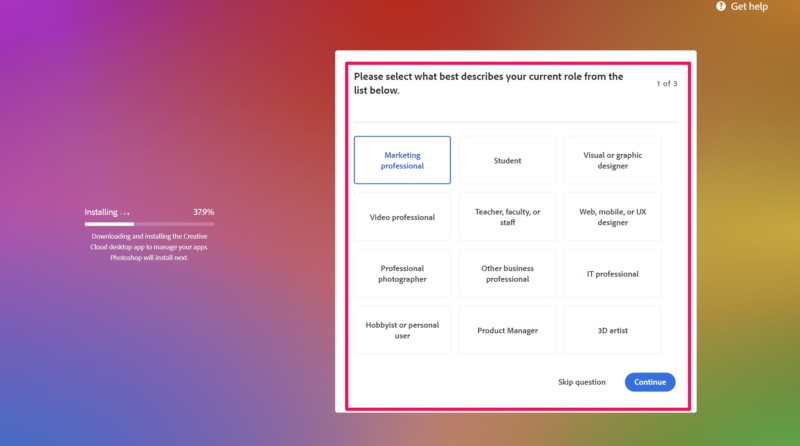 9.A telepítés során megtehetiVálaszoljon néhány egyszerű kérdésrearról, hogyan tervezi a Photoshop használatát a Windows 11 PC -n vagy a laptopon. Ez segít az Adobe -nak a Photoshop alkalmazás beállításában a telepítés utáni preferencia szerint.