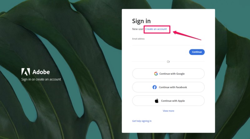 3.Jelenleg,Használjon érvényes e -mail címet-hozHozzon létre ingyenes Adobe Creative Cloud fiókját- Használhatja a meglévőket isGoogle,Alma,Facebook,Mikrosoft, vagyVonalfiók az Adobe Creative Cloud fiók létrehozásához.