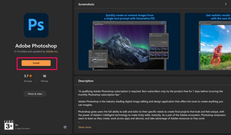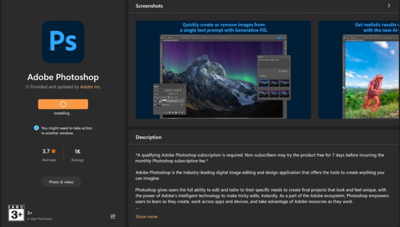 Töltse le és telepítse az Adobe Photoshop -t a Microsoft Store -ból a Windows 11 -en