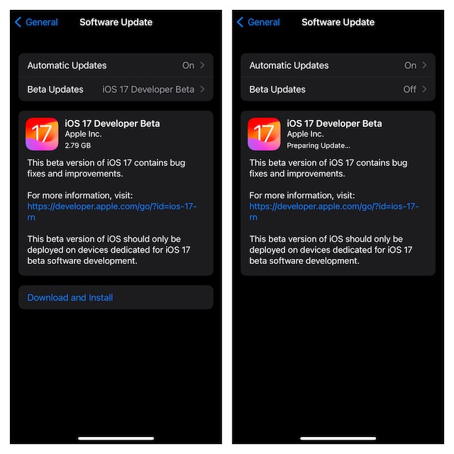 - Koppintson a gombraTöltse le és telepítseaz iOS 17 béta frissítésének telepítéséhez.
