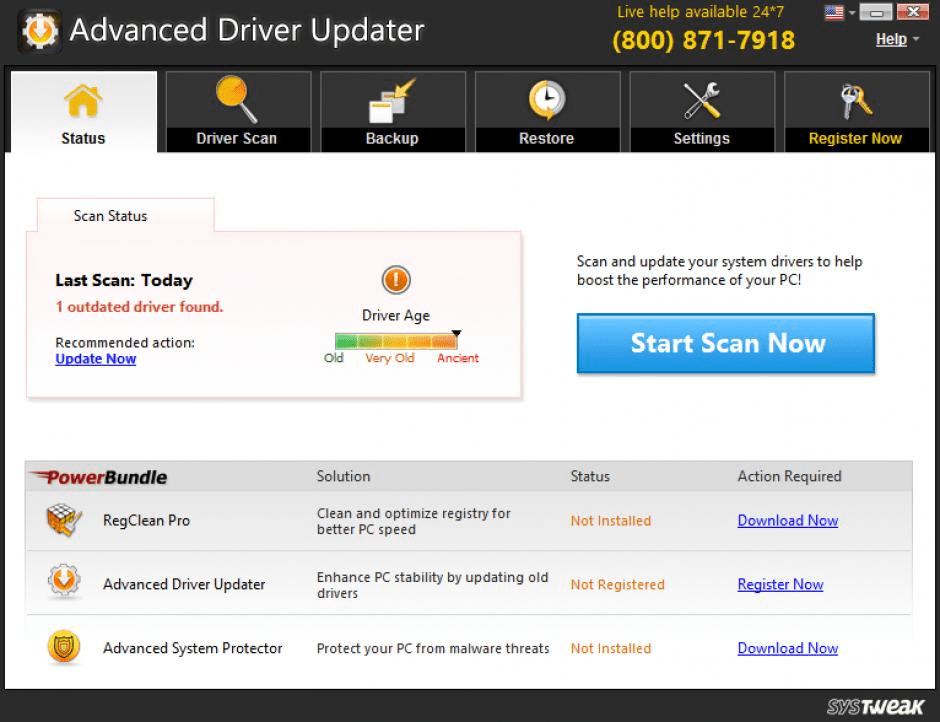 2. lépés: Futtassa a programot, és kattintson a „Szkennelés Now” elemre. A haladó illesztőprogram -frissítő felismeri a hardverét és új illesztőprogram -frissítéseket keres.