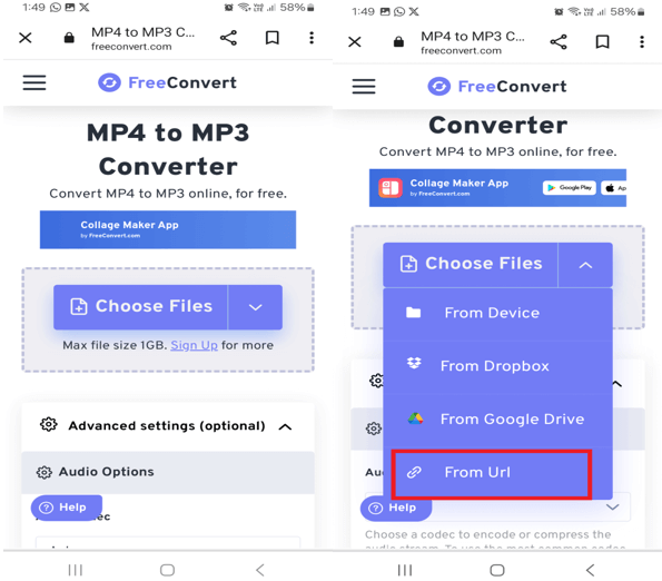 4. lépés:Érintse meg alefelé irányuló nyílikon a szomszédságábanVálassza ki a fájlokat> Válassza kiURL -bőlmajd illessze be a linket, és nyomja meg aBenyújtgomb.