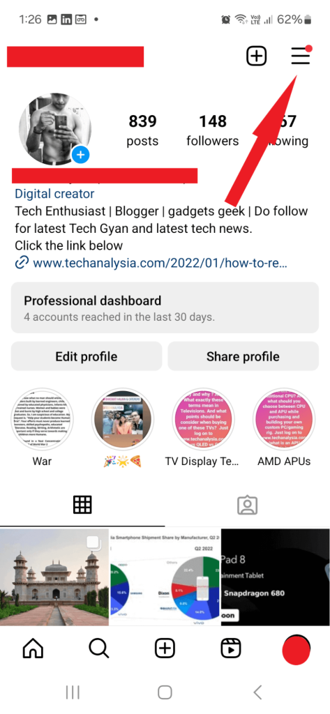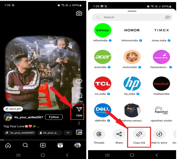 1. lépés:Nyissa meg az Instagram -ot, és nyisson meg minden orsót, ahonnan le akarja tölteni a hangot MP3 fájlként.