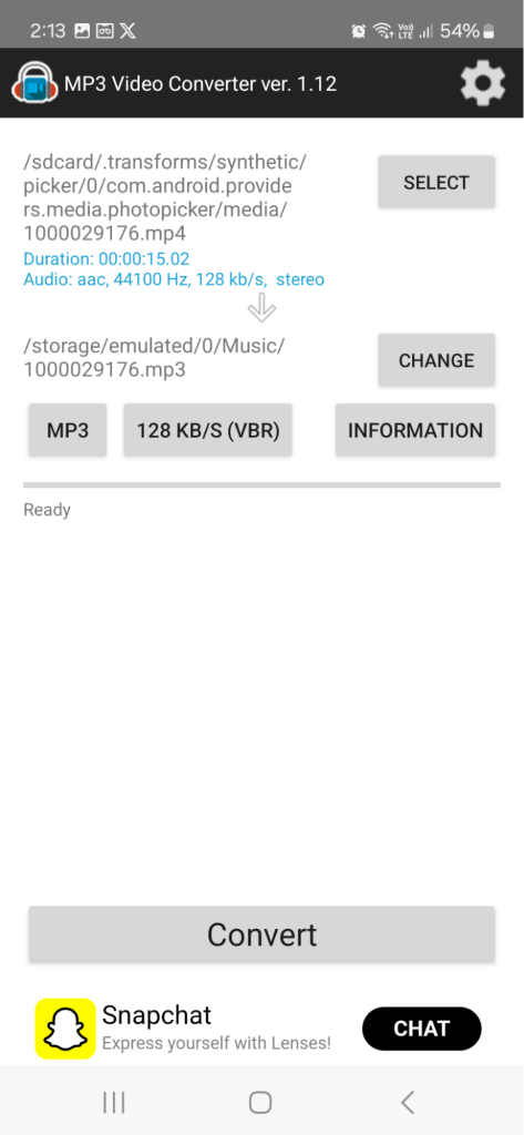 5. lépés:Nyissa meg az MP3 Video Converter alkalmazást, érintse meg aVálasszonikon, és válassza ki a letöltött Instagram tekercset.