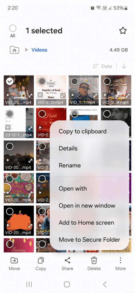 5. lépés:Menj aLetöltések/fájlokmappát, majd kattintson a letöltött Instagram tekercsre, majd kattintson ahárompontos ikon,választÁtnevez-