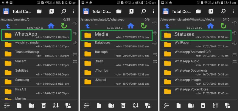 4.)Most látni fogod a„Media” nevű mappa, kattintson rá,Ha a készülék megtalálja a rejtett mappákat, megtalálja a nevű mappát„.Statuses”, ez a mappában megtalálja az összesetWhatsApp barátaid státuszaKészen áll a mentés, megosztás, szerkesztésre vagy másolásra a készülék bármely más mappájában, hogy bármikor könnyebben hozzáférhessen.