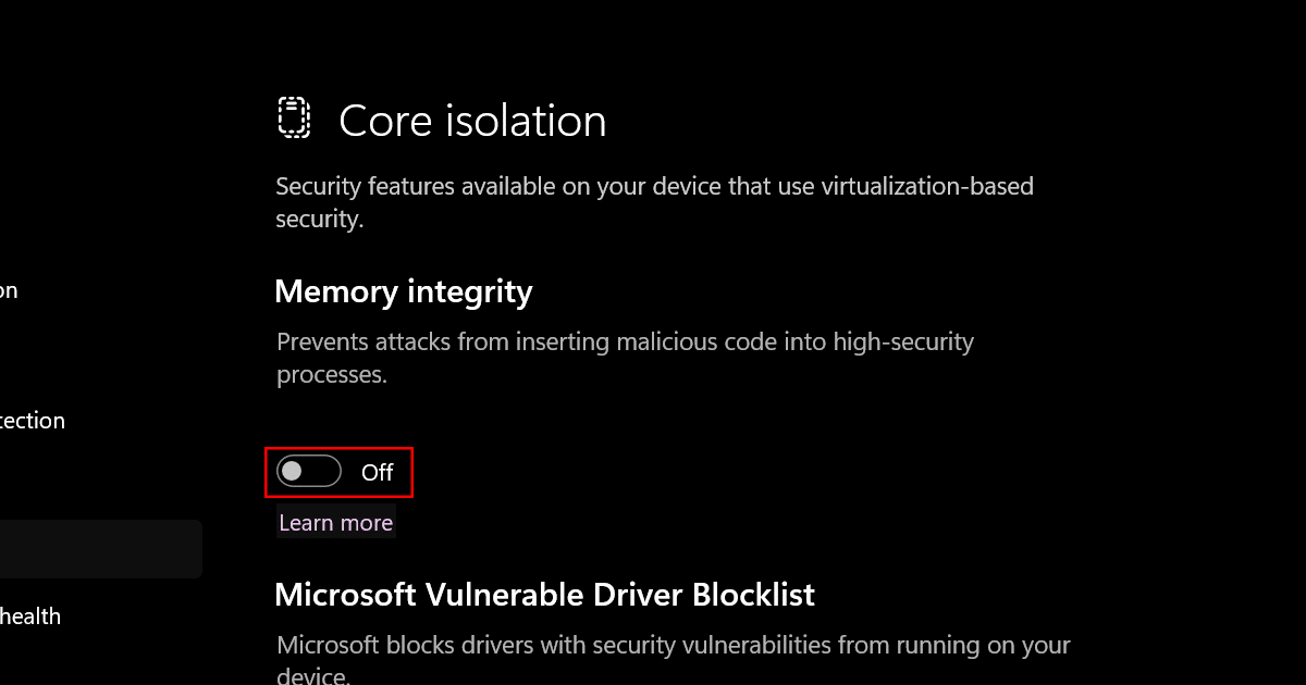 - Biztonság aggályok: Néhány ember aggódik a memória integritásának biztonsági következményei miatt. Úgy vélik, hogy felhasználható a legitim szoftverek futtatásának megakadályozására. Ha aggódik ennek miatt, érdemes letiltani a memória integritását.