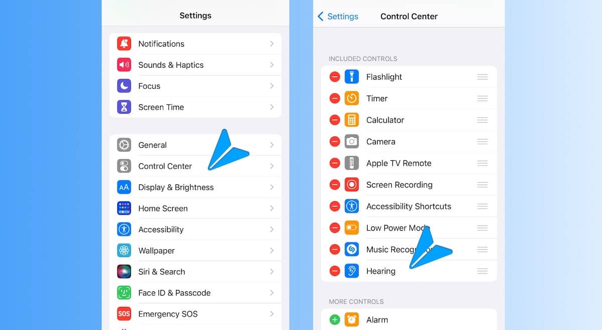 - A beállítási alkalmazásban érintse meg a Vezérlő központot.