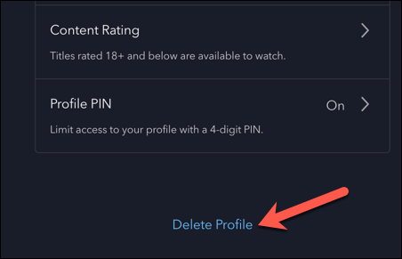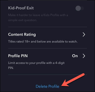 - Görgessen végig az opciók listáján, és válassza a lehetőségetProfil törléseaz alján.