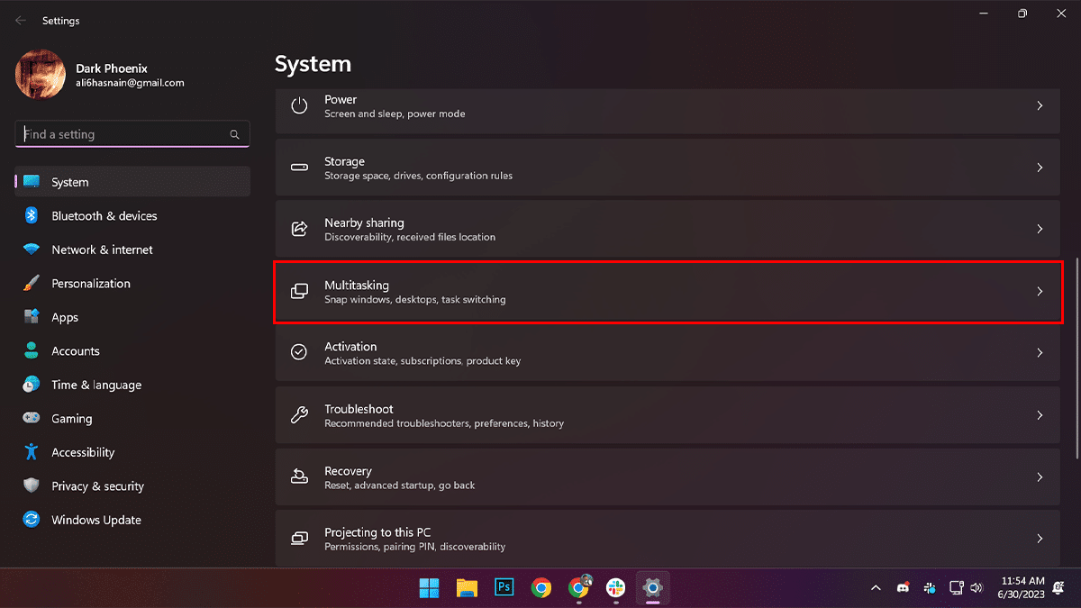 - Nyissa ki aBeállításokApp> Kattintson a KattintássalRendszerÉs kattintson a KattintsonTöbbfeladatos-