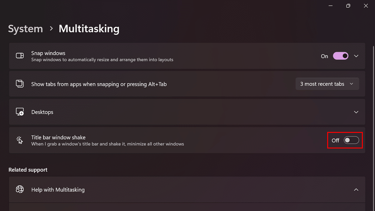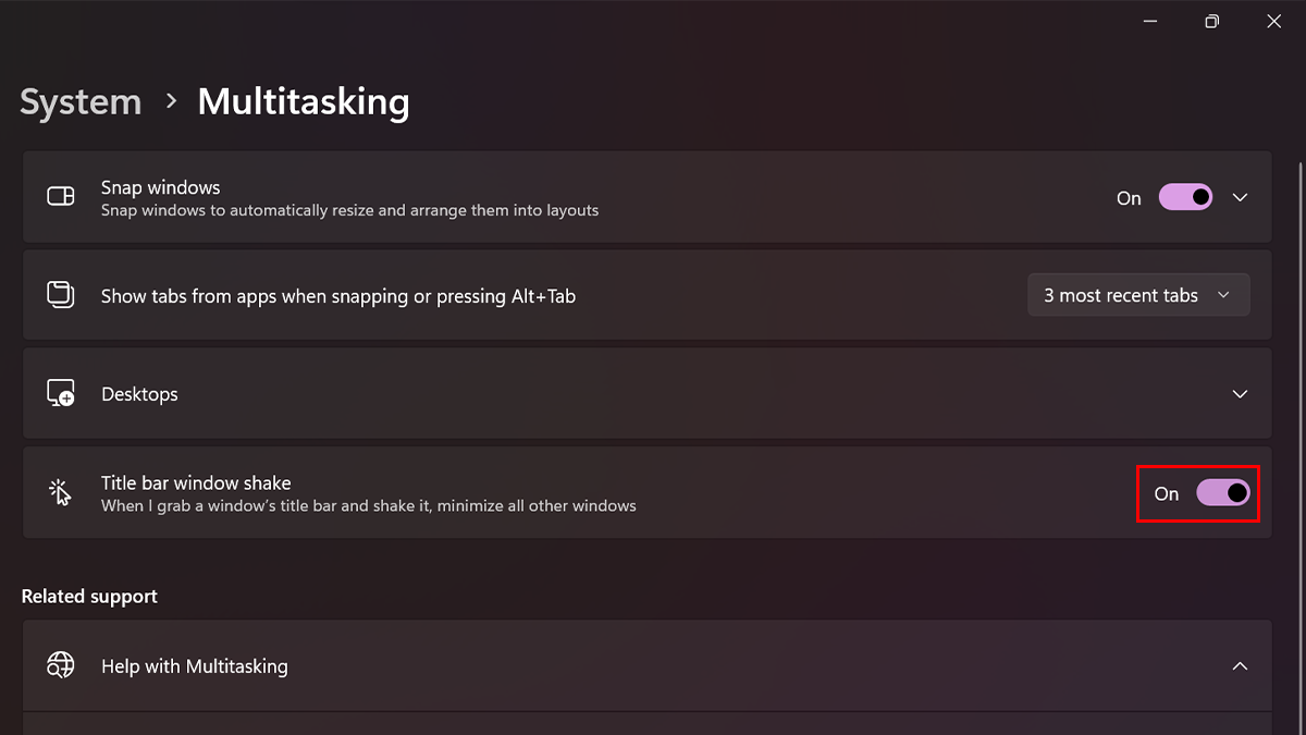 - Ha kész, a címsor ablak shake funkciója kikapcsol a Windows 11 -en.